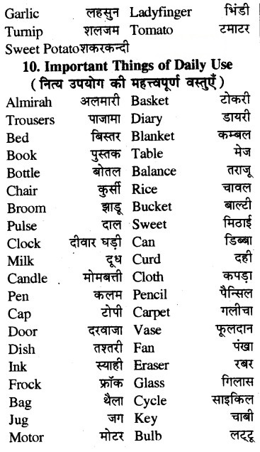 Useful Words of Daily Use — (नित्य प्रयोग के महत्त्वपूर्ण शब्द)
